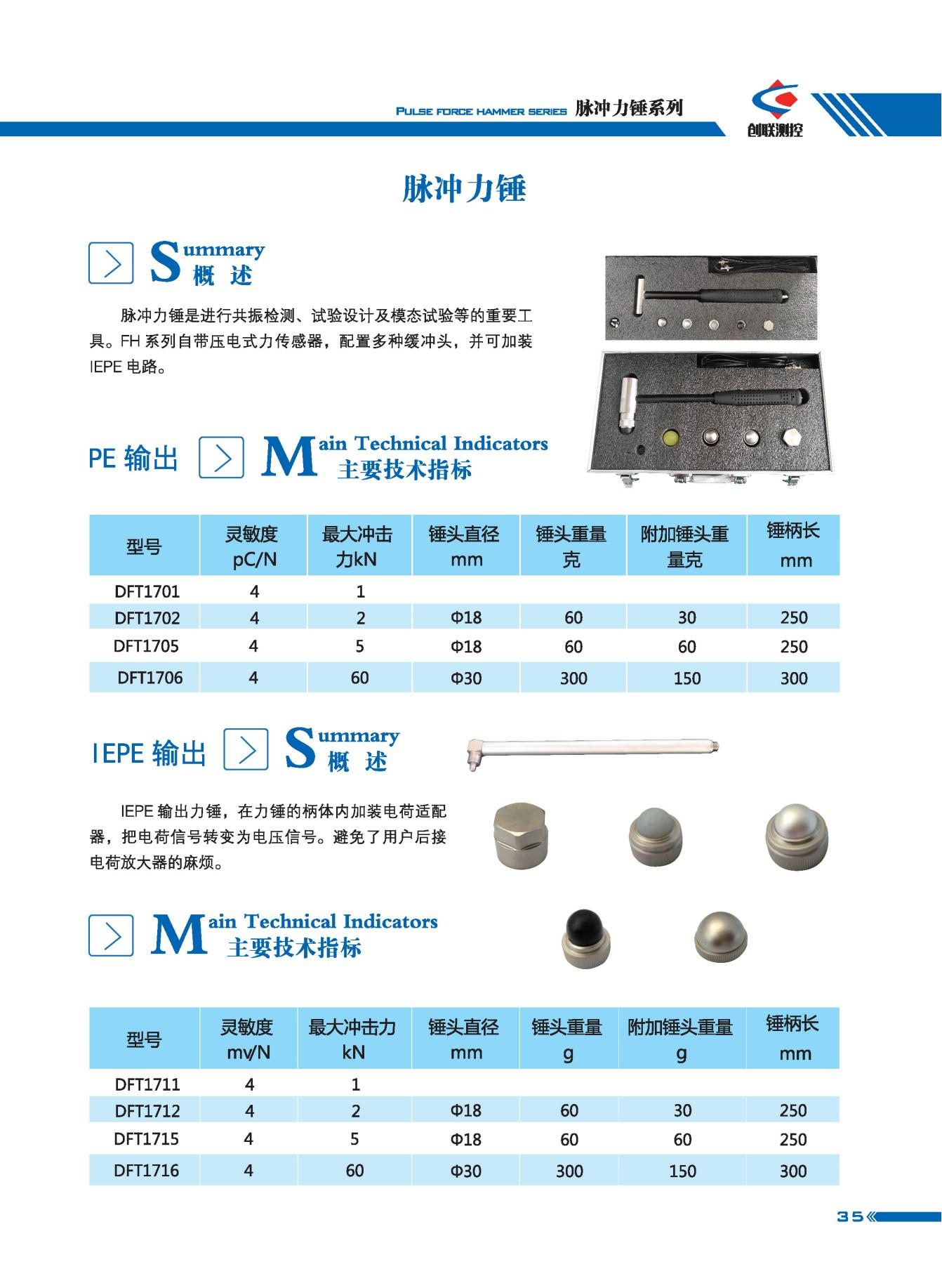 脉冲力锤是进行共振检测、试验设计及模态试验等的重要工具。FH系列自带压电式力传感器,配置多种缓冲头,并可加装 EPE电路。