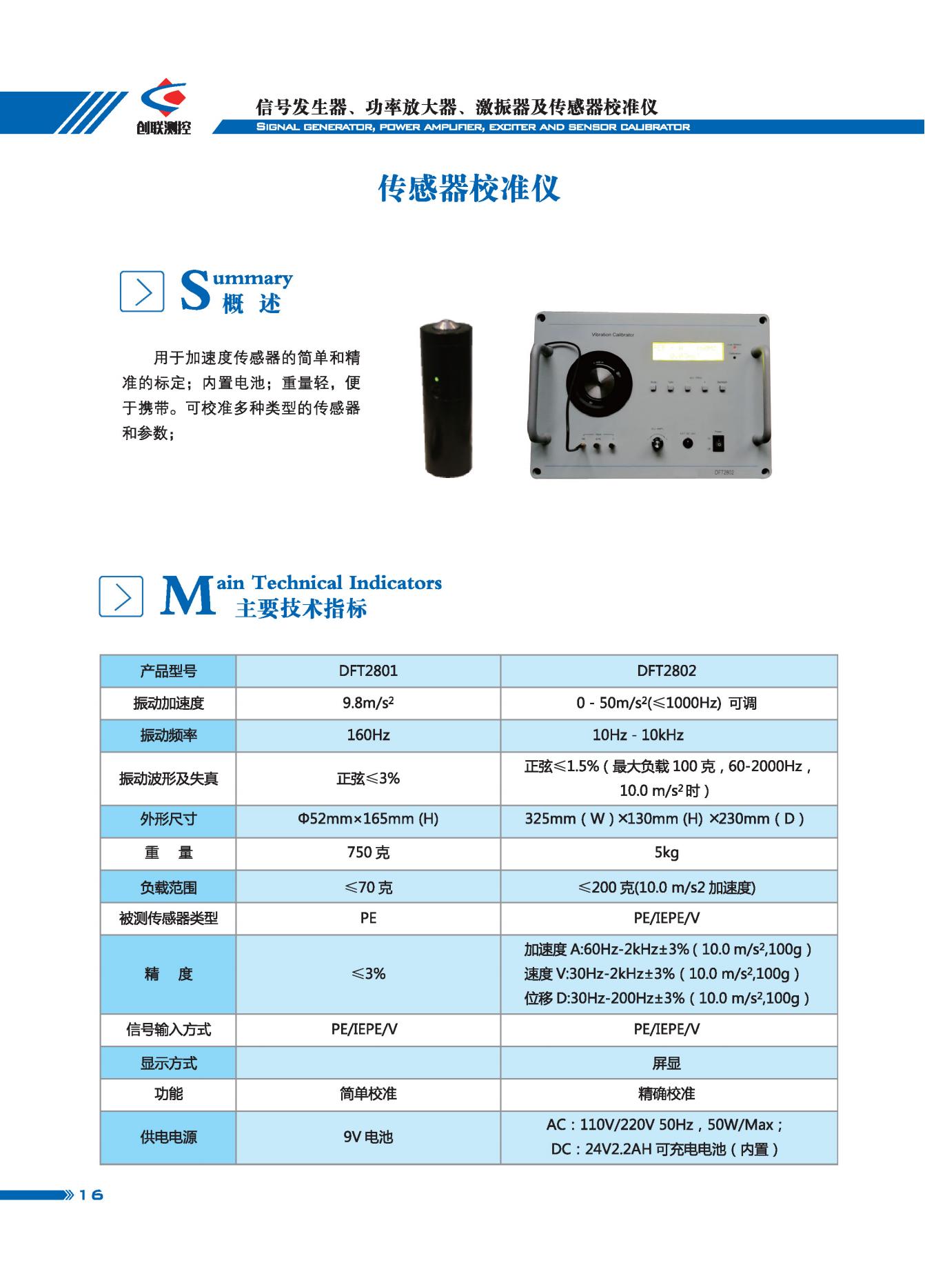 用于加速度传感器的简单和精准的标定;内置电池;重量轻,便于携带。可校准多种类型的传感器和参数;